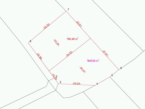 Wymiary: działka 1 zbliżona do prostokąta - 27m x 34,50m, działka 2 w kształcie prostokąta - 24m x 32m, (możliwość zakupu w całości lub osobno).